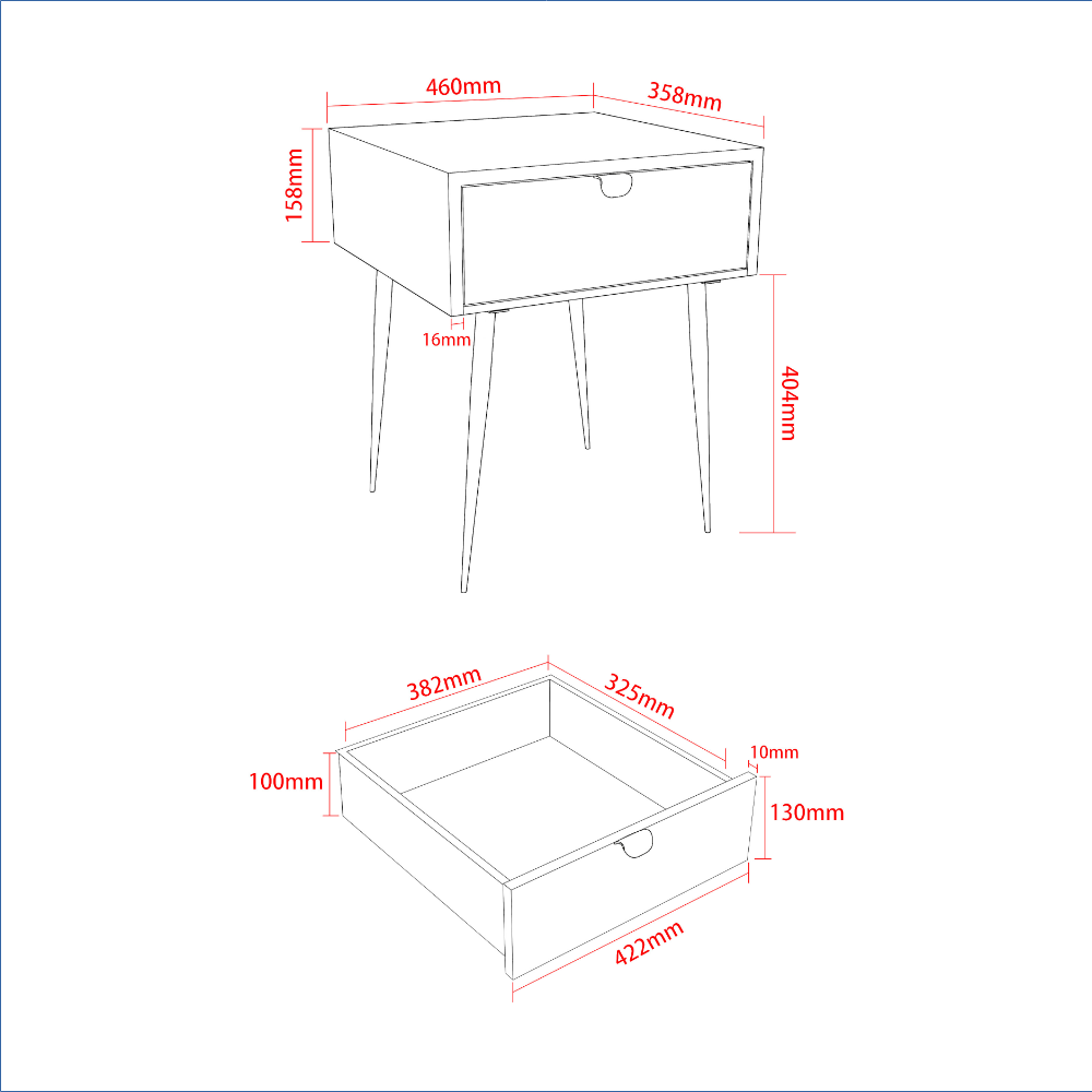 Black & Gold 1 Drawer Bedside Cabinet [Options]