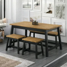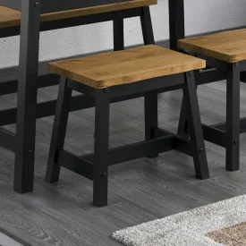They’re designed to provide comfortable seating for dining or casual gatherings. The wooden tops are smooth and polished, showcasing the natural beauty of the pine wood grain. The black legs are made of high-quality material, ensuring stability and support for anyone sitting on them.