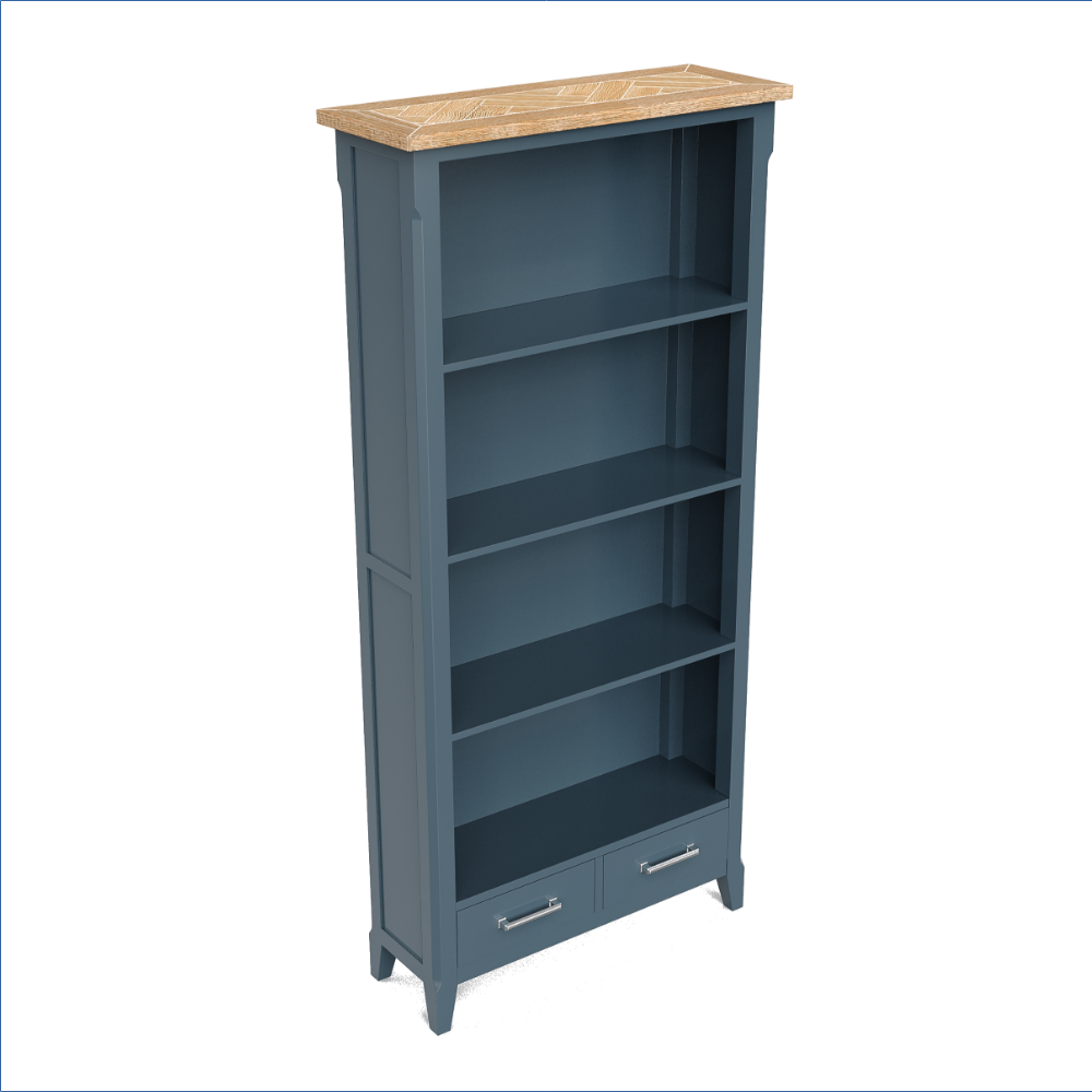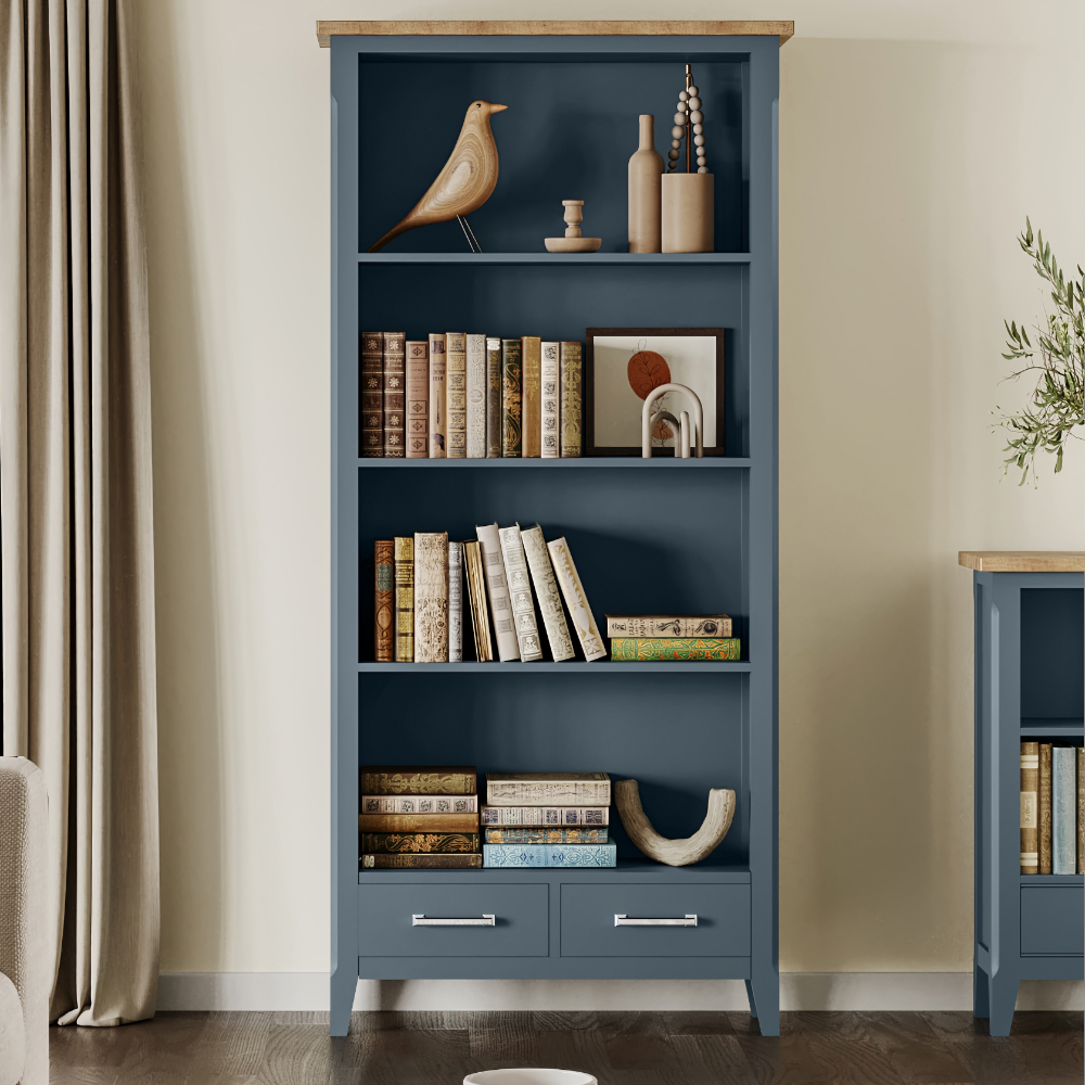 Make a bold statement with this large bookcase, with 2 bottom drawers, in our exclusive Signature Blue finish.