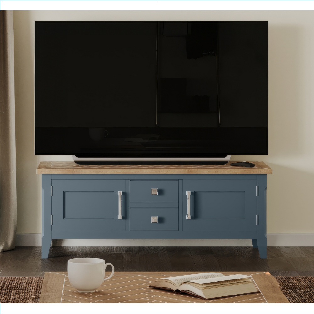 Blue & Oak Closed Television Unit [Signature Blue]