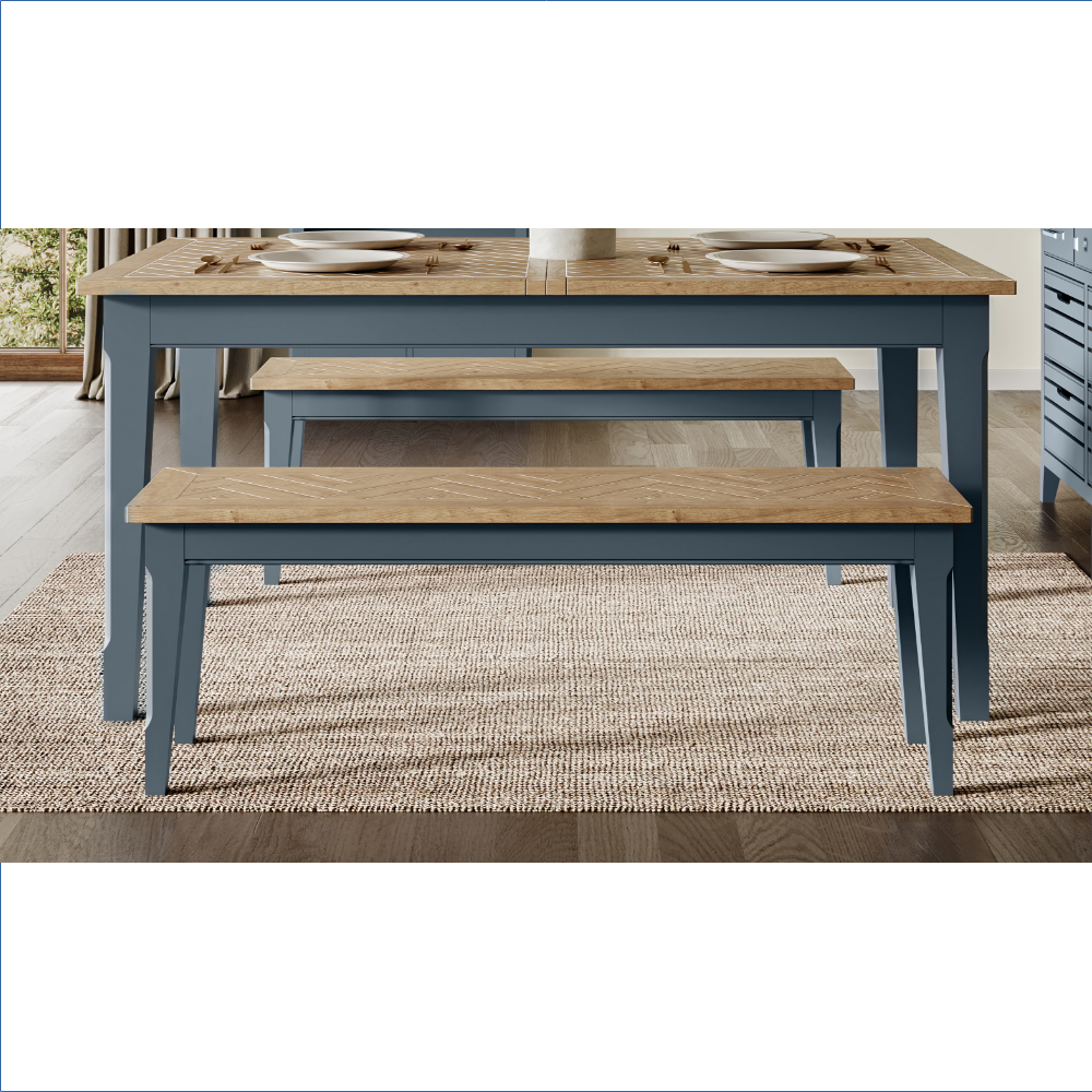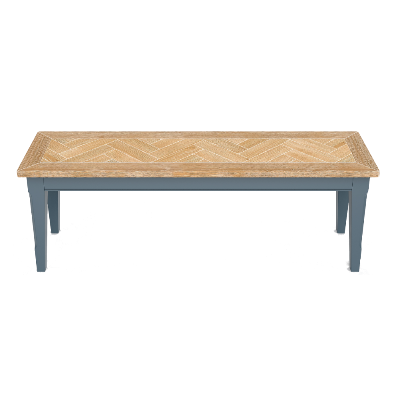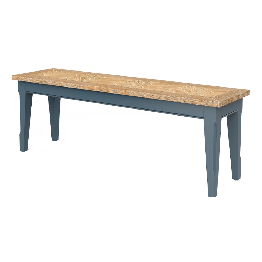Transform your eating space with this larger dining bench, a perfect blend of style and functionality. Crafted with a beautiful oak parquet top, this bench showcases the natural beauty of wood while providing a sturdy surface for dining or entertaining. The rich blue painted finish on the main body adds the colour, making it a striking centerpiece that complements a variety of decor styles. Whether you’re hosting a family gathering or enjoying a quiet meal, this bench offers ample seating and a warm, inviting atmosphere.