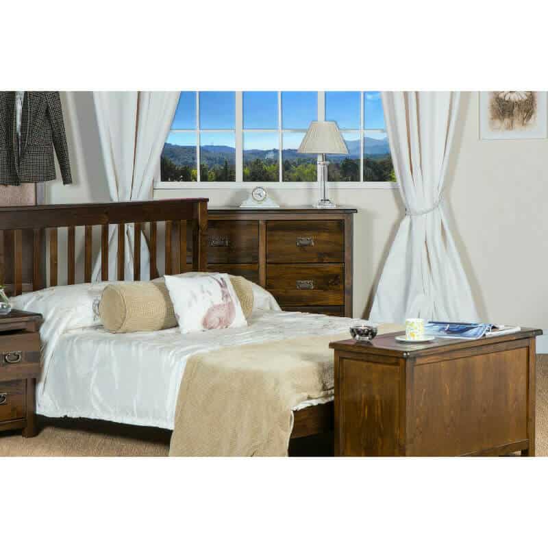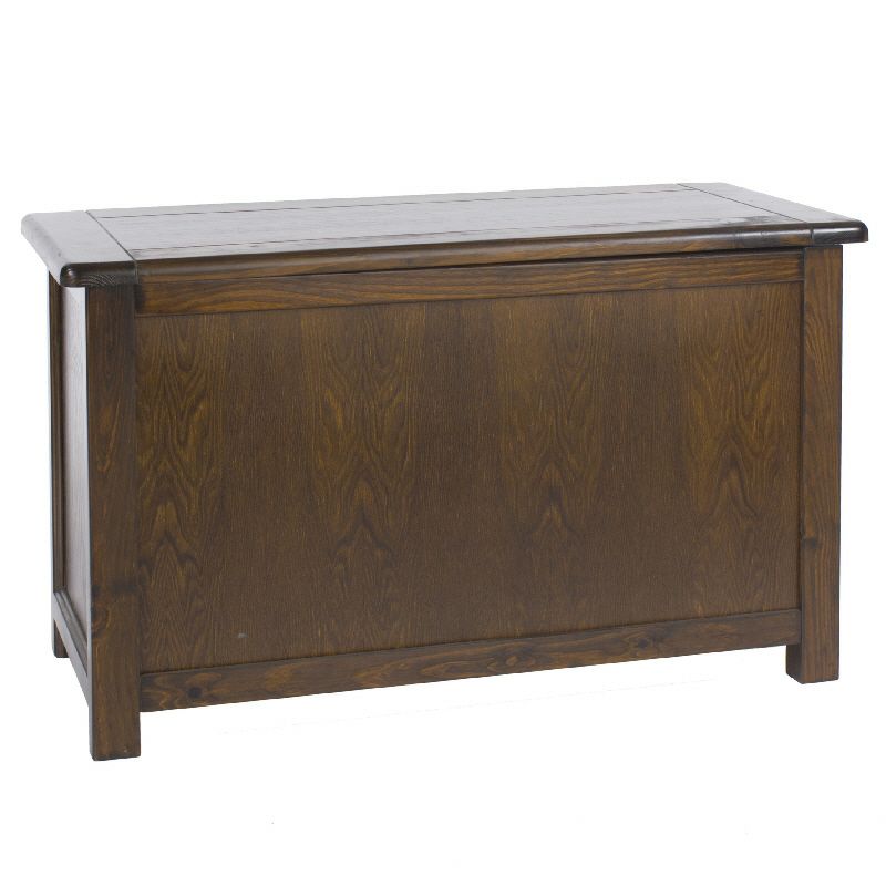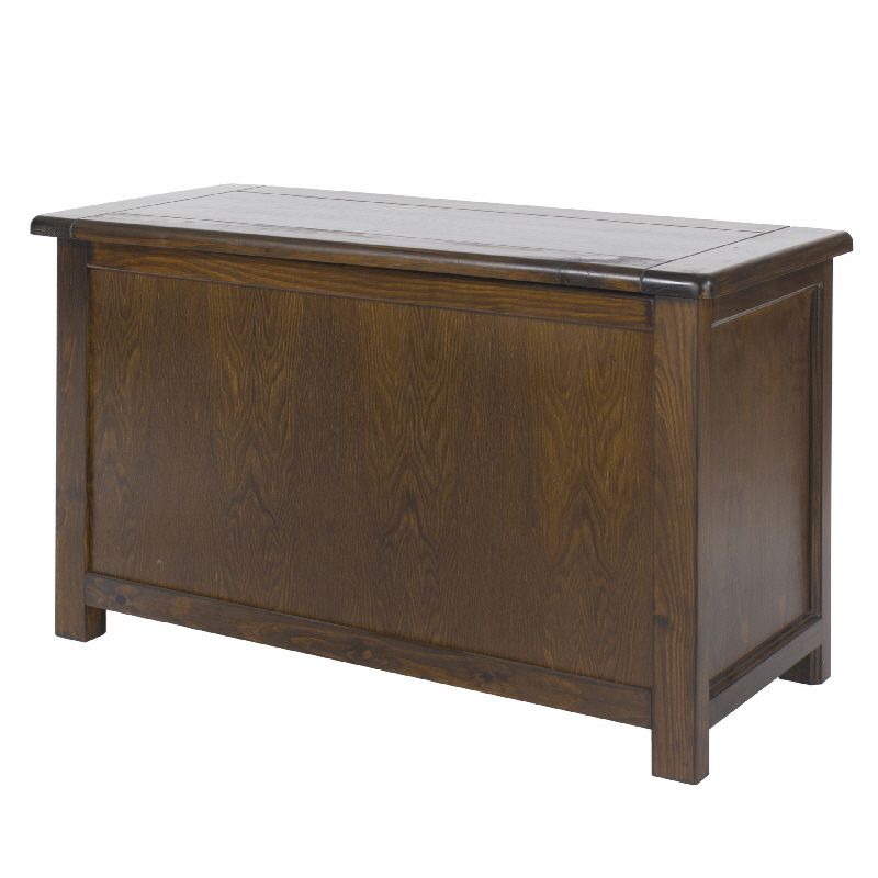 A Boston premium blanket box, also known and sold as an ottoman or a toy chest. So, a wooden box, albeit a really nice one. Like the rest of the Boston range, this is made from framed plywood, stained and lacquered in a dark, antique style effect. The top has an insert to match the framing, bringing it up to 25 mm thick. There’s a latch to hold the top open when in use.