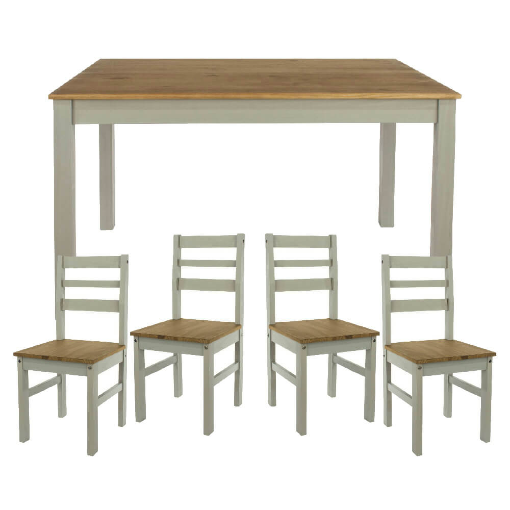 This 4 place dining set comprises the smaller Corona Grey table and 4 chairs (2 packs of 2), as shown. The items are available separately, but buying them as a set like this saves a few pounds more. Delivered flat packed for easy home assembly with just basic tools.