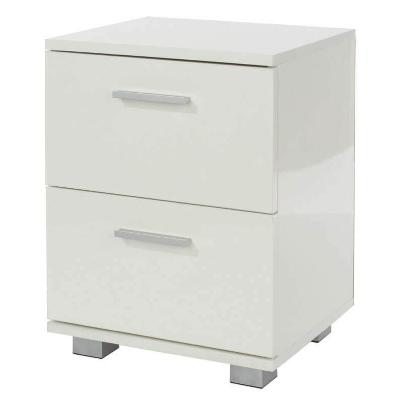 Gloss White 2 Drawer Bedside Cabinet [Lido]