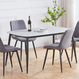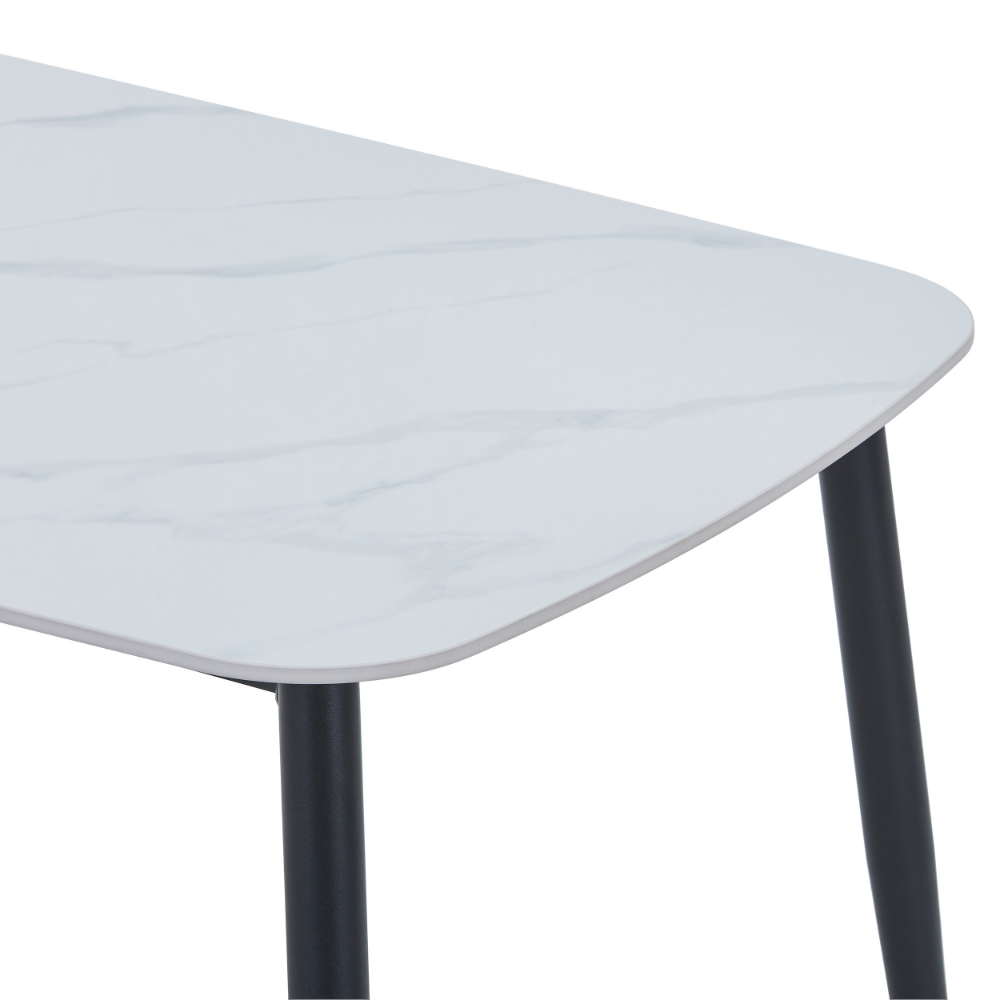 Introducing our Aspen dining table—a modern centerpiece designed to elevate everyday living. At first glance, its lustrous white surface captures the elegance of classic marble, but beneath that sophisticated sheen lies advanced sintered stone. This material not only mimics the timeless beauty of marble but also offers exceptional durability, easily withstanding the rigors of daily life. Spills, scratches, and stains are no match for the Aspen’s resilient surface, making cleanup effortless and maintenance minimal—a true advantage for busy households.