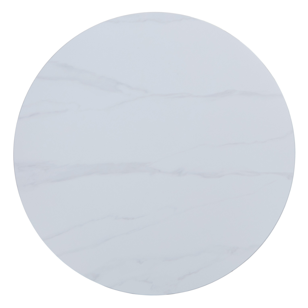 Take a closer look—the Aspen round dining table isn’t just trying to pass for marble; it genuinely delivers a striking high-gloss white marble look, bringing a sense of luxury to your dining space without the usual stress that comes with natural stone. Instead of fragile marble that stains at the drop of a glass, it’s crafted from sintered stone, a material designed to withstand daily life. So when someone inevitably knocks over a glass of red wine or you spill a little coffee during a long brunch, there’s no need for panic—cleanup is easy and the table remains flawless.