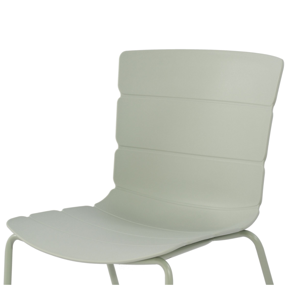 Our Bali chairs have a unique ribbed pattern that seamlessly flows around the seat, which is manufactured from high-quality light green coloured molded plastic. The legs are constructed from tubular steel, precisely engineered and welded to ensure a strong, durable frame. The seat frame is finished in a coordinating light green colour that complements the seat, providing your chairs with a striking modern aesthetic.