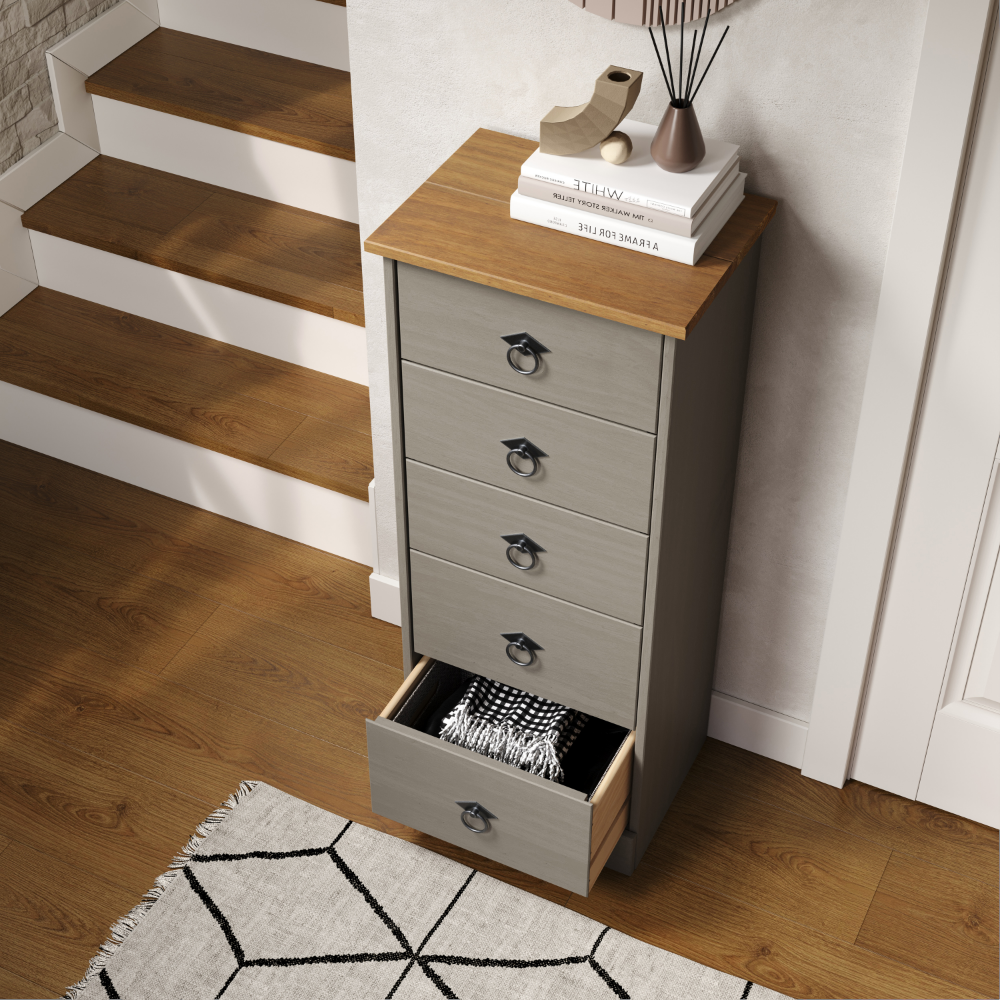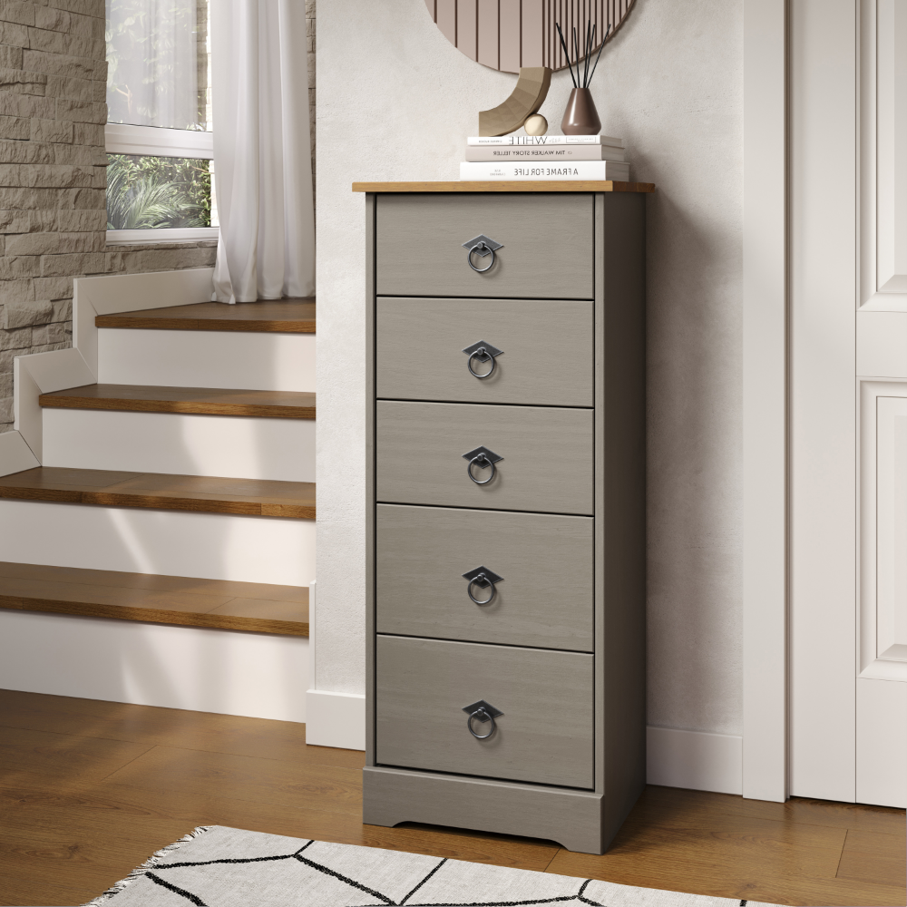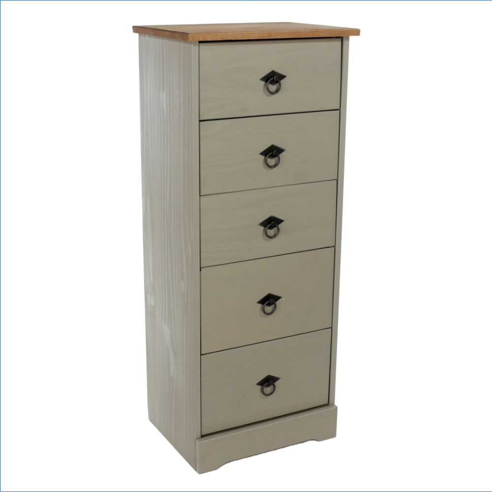 Grey 5 Drawer Narrow Chest of Drawers [Corona Classic]