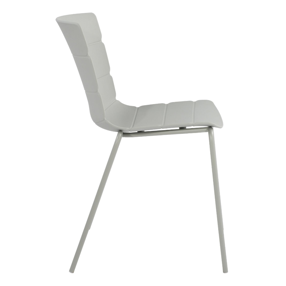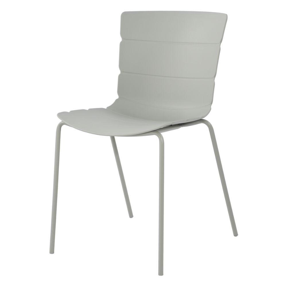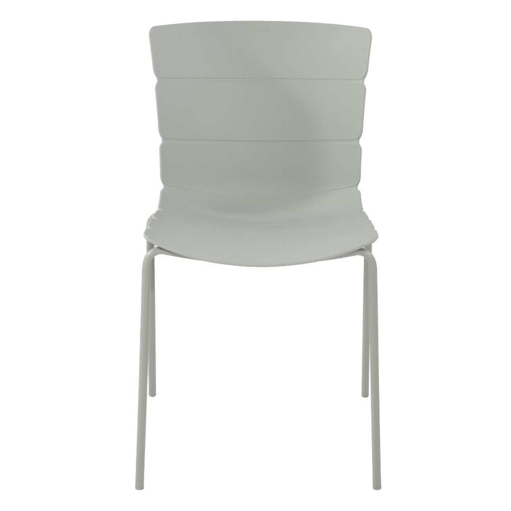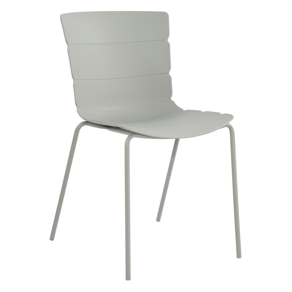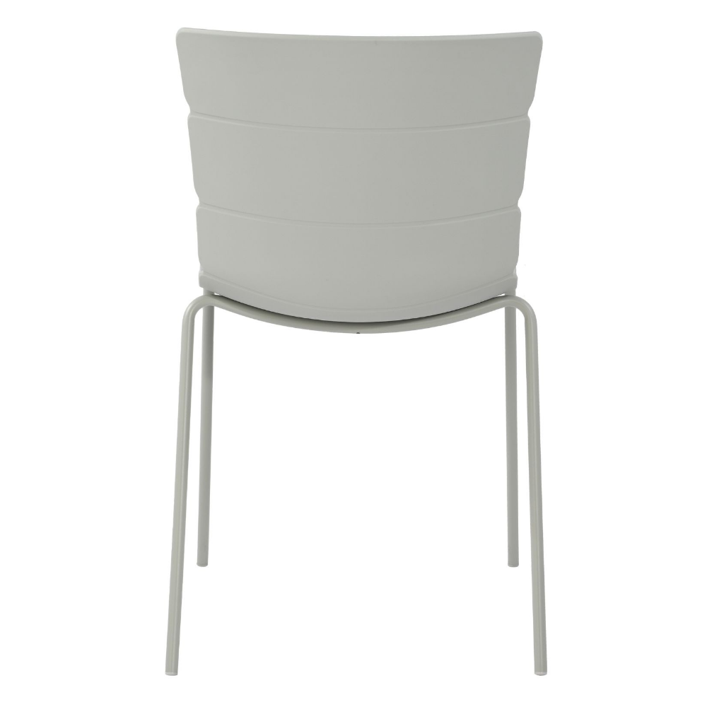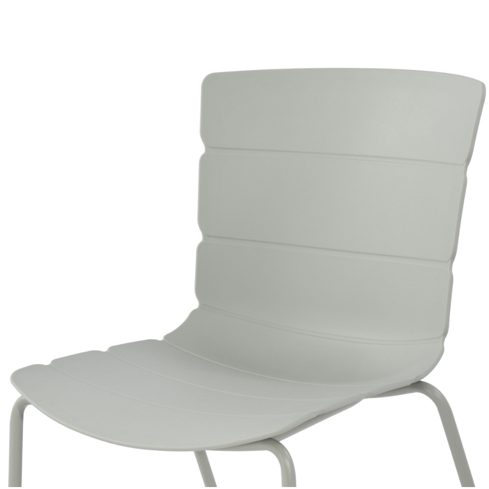 Our Bali chairs have a unique ribbed pattern that seamlessly flows around the seat, which is manufactured from high-quality light grey coloured molded plastic. The legs are constructed from tubular steel, precisely engineered and welded to ensure a strong, durable frame. The seat frame is finished in a coordinating light grey colour that complements the seat, providing your chairs with a striking modern aesthetic.