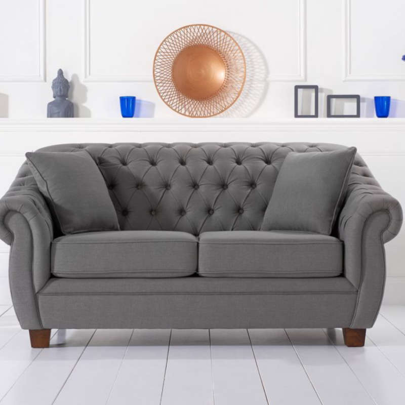Blending timeless chesterfield-inspired styling with chic grey upholstery ensures our Liv 2 seater looks equally stunning in traditional or contemporary settings. The sofa features scroll style high-rise arms, a button detailed back and square-cut solid ash feet. Crafted to the highest standards, the chair is upholstered in grey linen fabric and the seat cushions are densely packed. The sofa comes with two cushions to complete the look.
