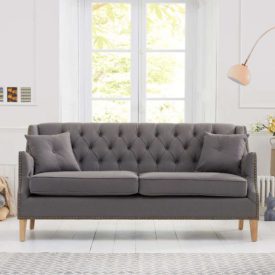 Beautifully complementing any home, the Carmen grey fabric 3 seater sofa features a timeless design with elegant detailing. Stylish and comfortable,it seats three people and has been crafted to the highest standards.