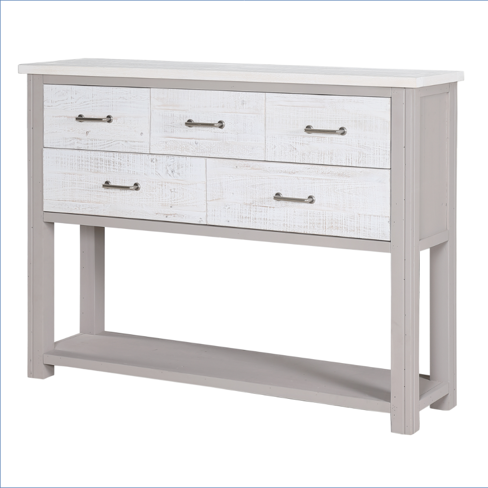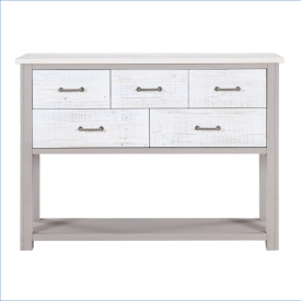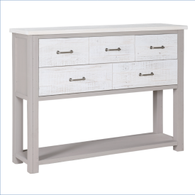 With five spacious drawers and an open shelf, this console table offers both style and functionality, making it perfect for storage and display. Plus, it comes with a FIVE YEAR warranty against manufacturing issues, so you can buy with confidence. Designed to last a lifetime, this high-end collection requires no assembly, allowing you to enjoy your new centerpiece right away!