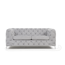 Elegant and classy, the Alegra 2 seater sofa in plush grey fabric is a stunning statement piece of furniture. With its classic Chesterfield, deep buttoned design, and striking metal feet, the Alegra sofa has a luxury look and comfort. The seats are made using a high density foam, and feature a low back. The Alegra range comes in blue or green plush fabric choices also. This 2 seater sofa is supplied with 2 complimentary scatter cushions.