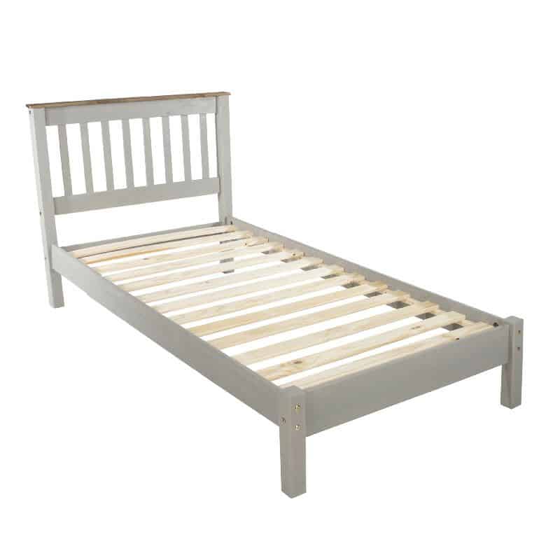 Grey Single Bed with Pine Top Rail [Corona Grey]