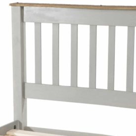 Here’s something a bit different from our Corona Grey Washed range. It’s a modern looking bed frame, with a integrated slatted headboard, painted with a grey wash. As with the rest of the range though, it’s got some unwashed wood highlights, in this case the rail atop the headboard. It doesn’t look much in our photos, but when the bed clothes are on it will catch your eye more and look top class.