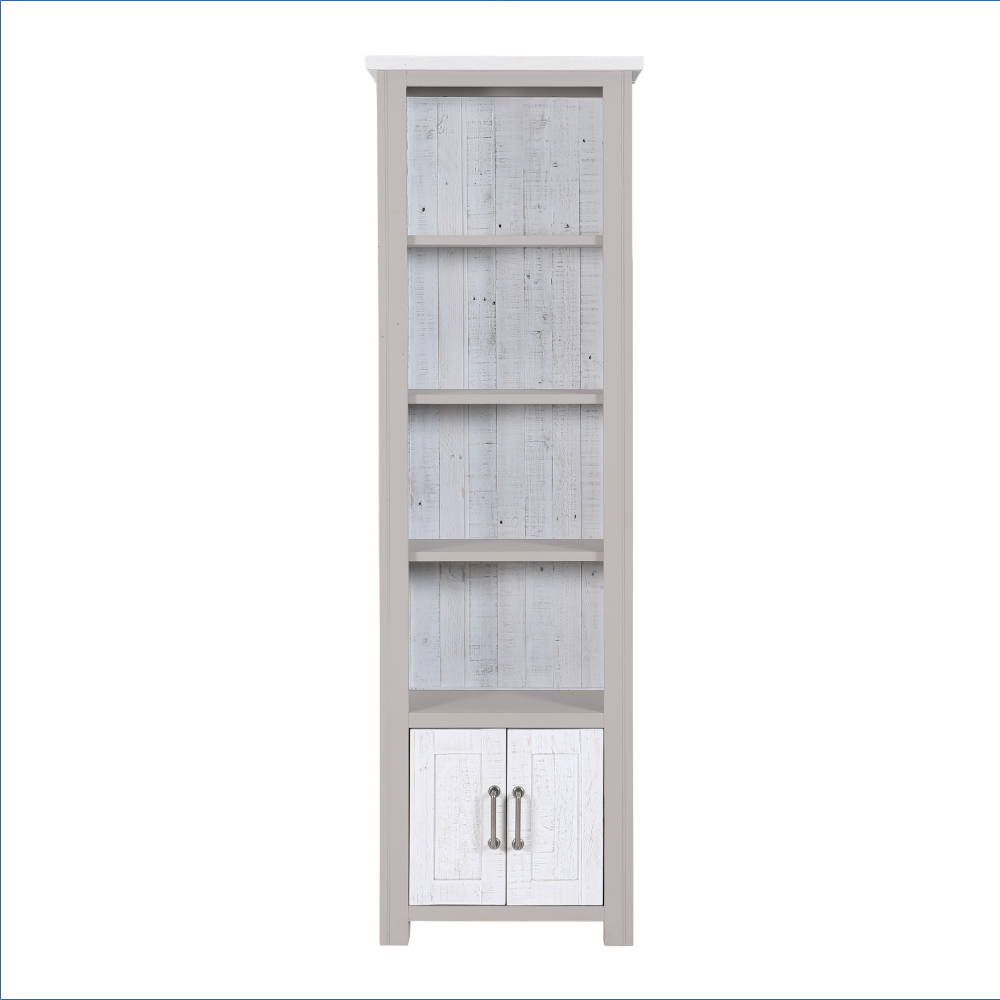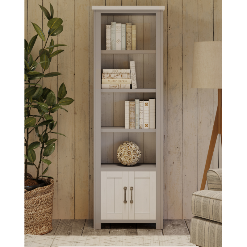 Grey Tall Narrow Bookcase with Cupboard [Greystone]