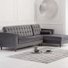 Kick back and relax on our Anneliese grey velvet chaise sofa. A luxurious chaise sofa that can seat up to 5 people, it’s available with a left or right facing chaise, making it a perfect addition to most room shapes.