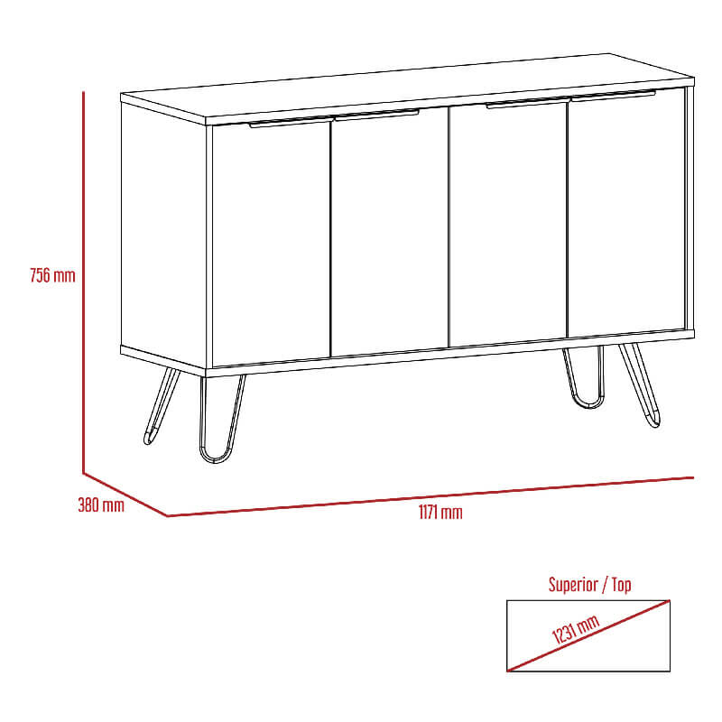 Oak & Grey Large Sideboard, Hair Pin Legs [Nevada]