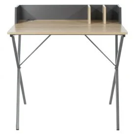 An occasional desk that wouldn’t look out of place in the corner of a living room, and would be perfect in a bedroom. The top is oak-effect melamine, a material that’s far more durable and easier to clean than natural wood. The legs are grey metal and have side braces to prevent wobble. An Allen key is supplied with it, so no need to worry about having the right tools to build it.