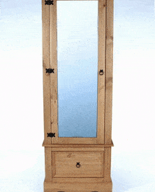 Pine Armoire 1 Mirrored Door 1 Drawer [Corona]