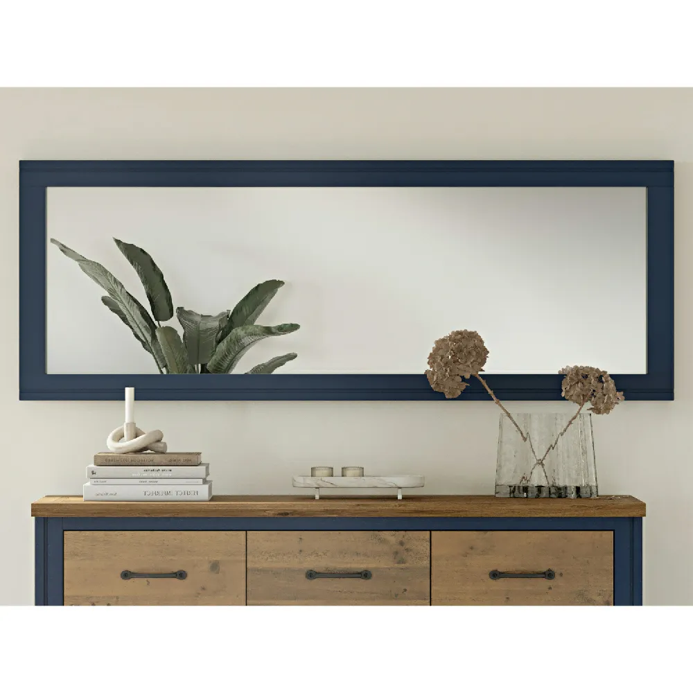 Reclaimed Extra Long or Wide Wall Mirror from our Splash of Blue Collection. This premium collection is crafted to stand the test of time. No assembly is needed-simply hang it horizontally above a sideboard or fireplace, or vertically as an alcove or full-length mirror.
