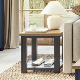 Reclaimed Lamp Table with Shelf [Splash of Blue]