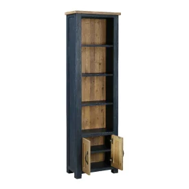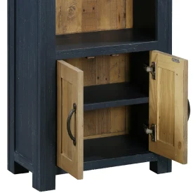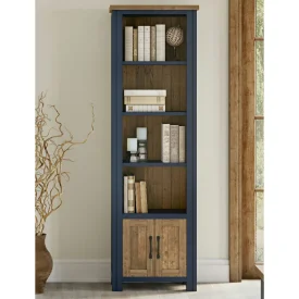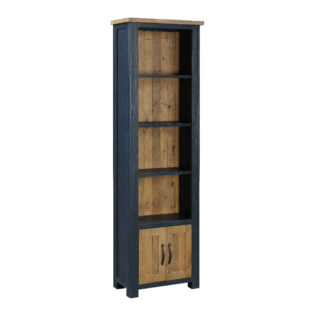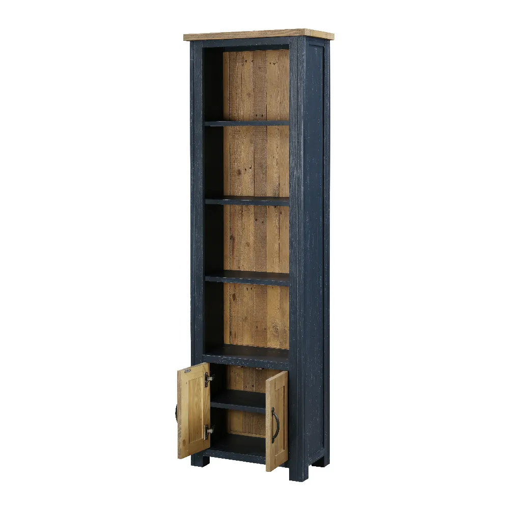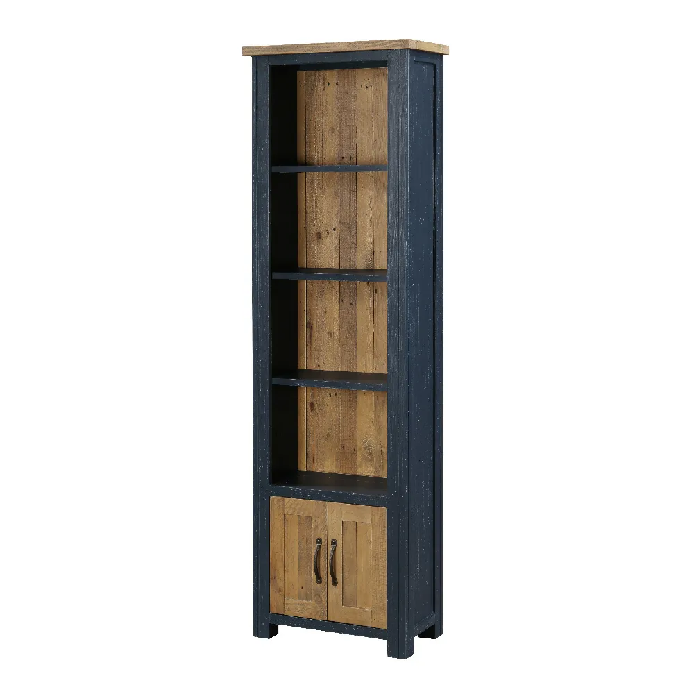 Reclaimed Tall Narrow Bookcase with Cupboard [Splash of Blue]