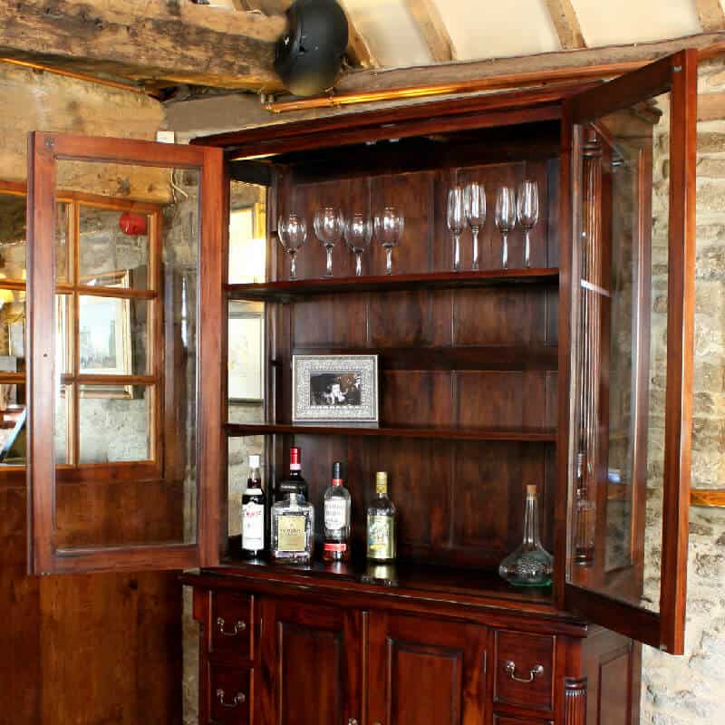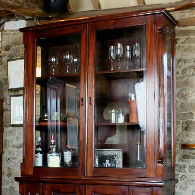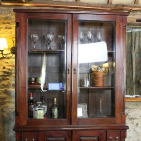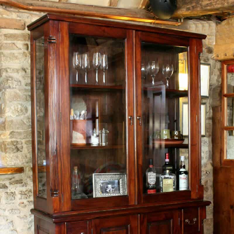 Here’s an addition to our La Roque sideboard, a solid mahogany and glass display section that sits directly on top of it, creating this stunning piece of furniture. We say addition because of course you need to have the sideboard as well, this item on its own would not look good sitting on the floor or another non-matching piece. Made from top quality mahogany, and glazed with BS EN 12150-1:2015 quality glass, this unit comes fully assembled and very securely packed. The double doors feature antiqued brass tear drop handles, and hand carved flutes down the sides. There is felt on the bottom to protect the sideboard and it’s all coated with a mid gloss lacquer which offers superior protection without hiding the beauty of the wood.
