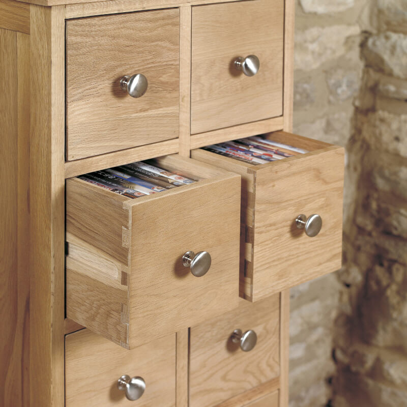 Solid Oak Multi-Drawer DVD/CD Chest, Fully Assembled