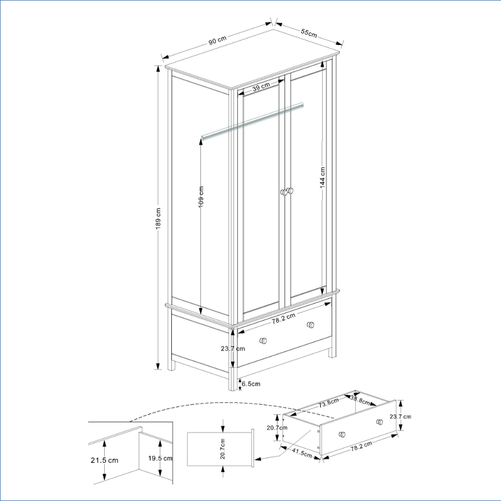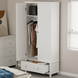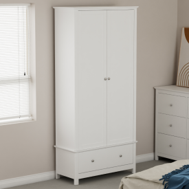White Double Wardrobe with Bottom Drawer [Nairn]