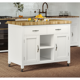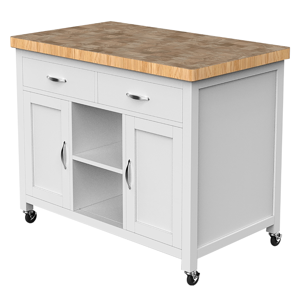 White Mobile Kitchen Island with Butcher’s Block [Kitis]