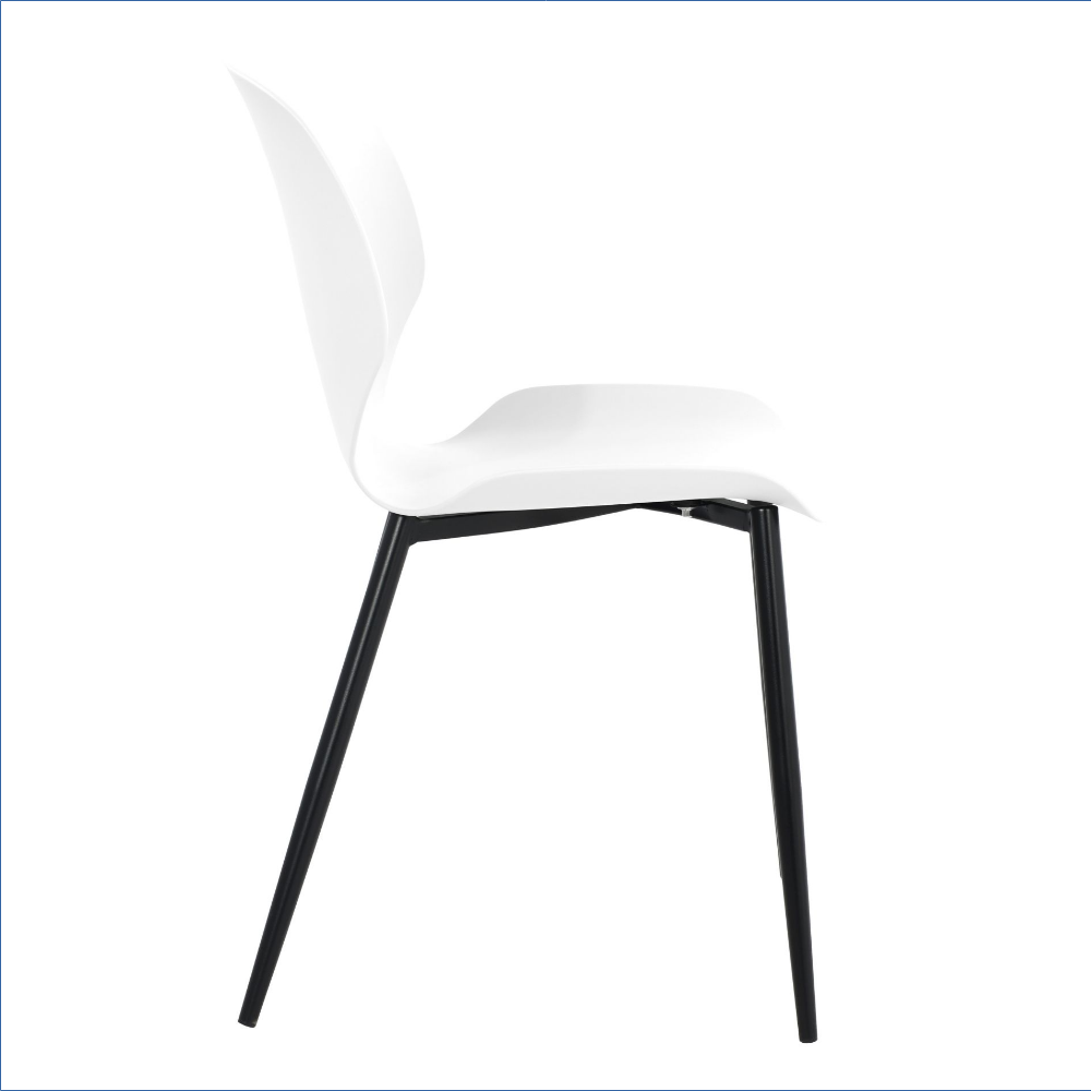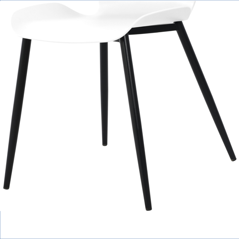 This pair of white Aspen Carnaby chairs perfectly captures the spirit of mid-century design. Featuring a contoured back and seat, they deliver both stylish comfort and the durability of solid molded plastic, which is highly resistant to wear and simple to clean. The tapered legs are crafted entirely from steel tubing, spun at high speed to form a smooth, seamless taper. These legs and the underframe are precisely welded and finished with a matte black paint, resulting in a sturdy, easy-to-assemble chair for your convenience.
