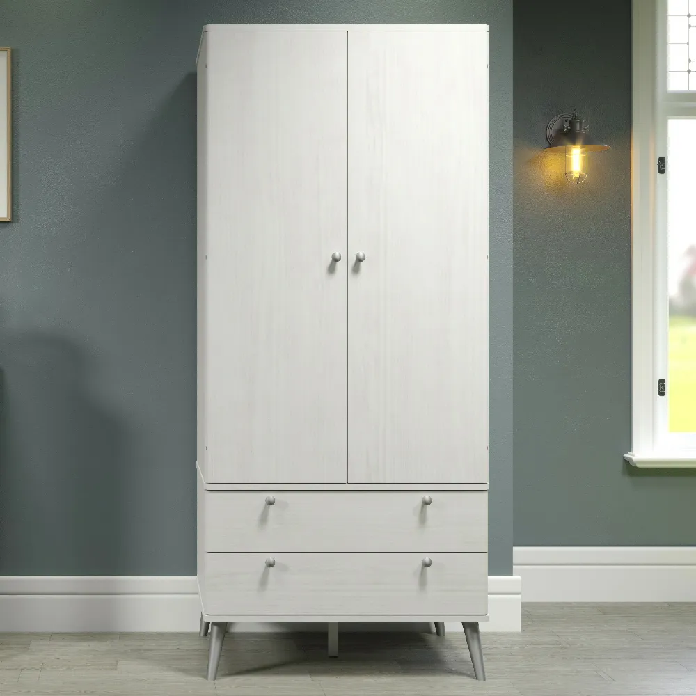 Whitewashed Double Wardrobe with 2 Drawers [Augusta]