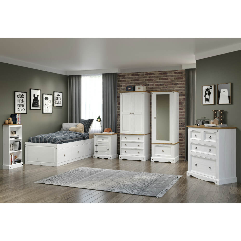 These small bookcases are ideal for keeping your current books close to hand and will fit in a multitude of areas around a room. There’s 2 shelves, which should be more than enough, and they’re ideal as display units too. In pine with a whitewash coating, with the top waxed only. The decorative studs are included but it’s your choice whether to use them or not.